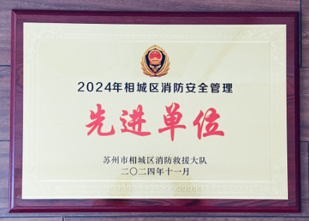 公司2024年11月榮獲蘇州市相城區(qū)消防安全管理先進(jìn)單位稱號(hào).