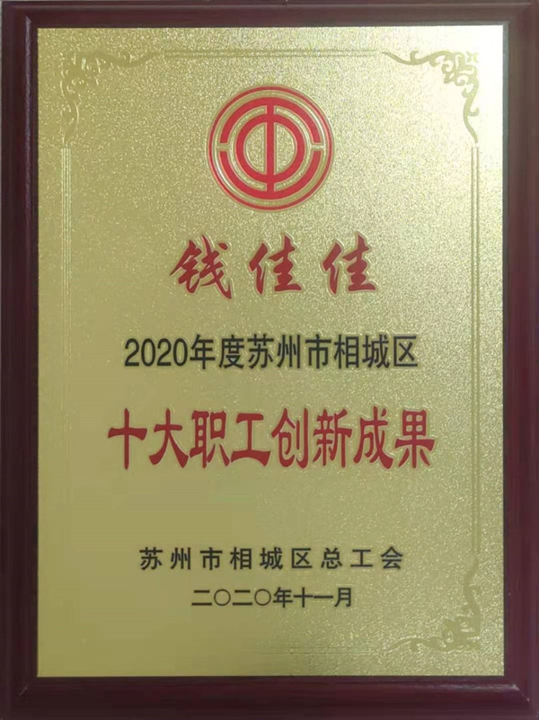 2020年11月,公司技術(shù)骨干錢佳佳申報(bào)的“A-406消泡劑的開發(fā)”項(xiàng)目獲得2020年度蘇州市相城區(qū)“十佳職工創(chuàng)新成果”稱號(hào)。