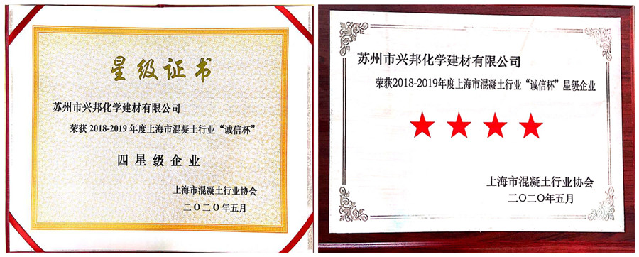 2020年5月,公司榮獲2018-2019年度上海市混凝土行業(yè)“誠(chéng)信杯”四星級(jí)企業(yè)。